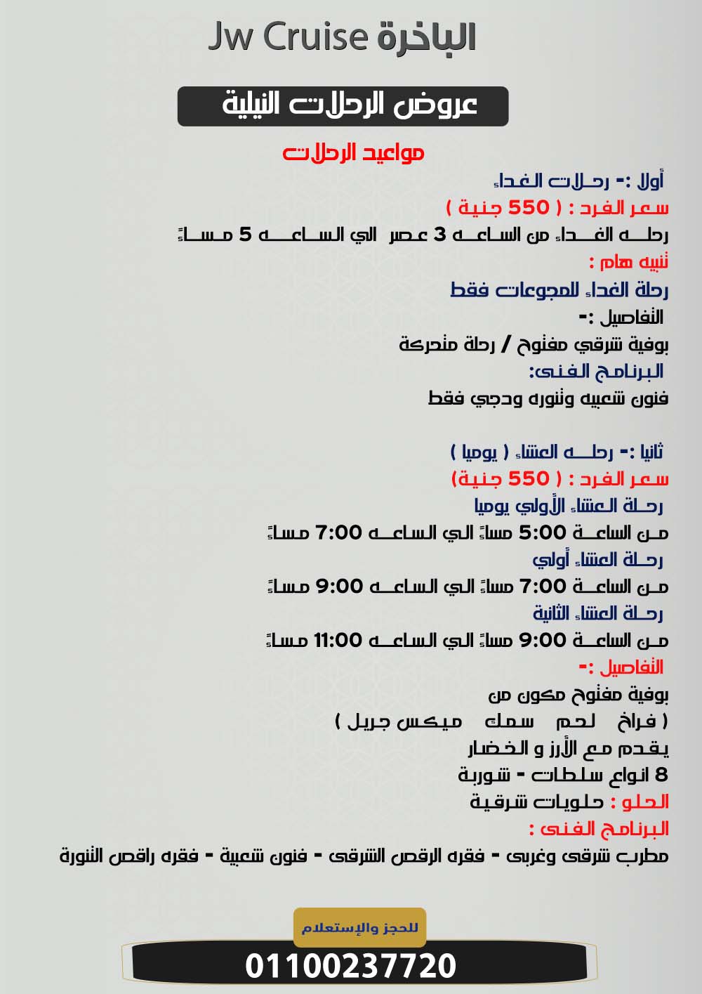 قم بالضغط على الثلاث نقاط بالأسفل لمتابعة جميع عروض البواخر النيلية